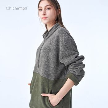 Sustentável DualSide Unisex Stand Collar Metade Frente Placket Cânhamo Velo Casual Pullover
